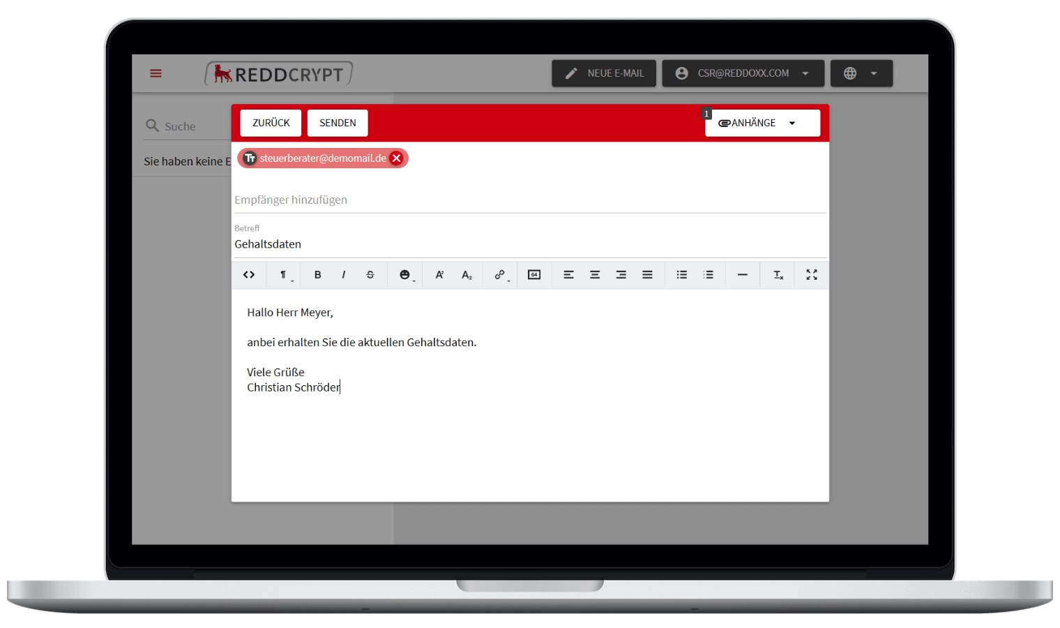 The REDDCRYPT web app is the ideal introduction to email encryption and protecting your emails against third-party access. You only need an account and are ready to go and encrypt your emails upon successful authentication on the web app.
